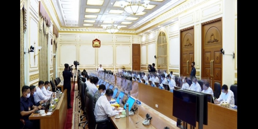 The Union Government Meeting (8/2022) was held at the SAC Chairman office in Nay Pyi Taw on Tuesday with an address by Chairman of the State Administration Council Prime Minister Senior General Min Aung Hlaing. Vice Chairman of the SAC Deputy Prime Minister Vice Senior General Soe Win, Union Ministers and Nay Pyi Taw Council Chairman attended the meeting and also the Region and State Chief Ministers attended via video conferencing.