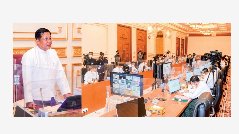 The Union Government Meeting (3/2022) was held at the Office of the State Administration Council Chairman on Thursday. SAC Chairman Prime Minister Senior General Min Aung Hlaing attended the meeting and gave a speech, saying that efforts are being made to pave way to democracy as desire by the people by amending the administration, economic and political fields as necessary. He said there have been faced obstacles in 2021 due to the political situation and COVID-19 pandemic as well as the internal armed conflicts.