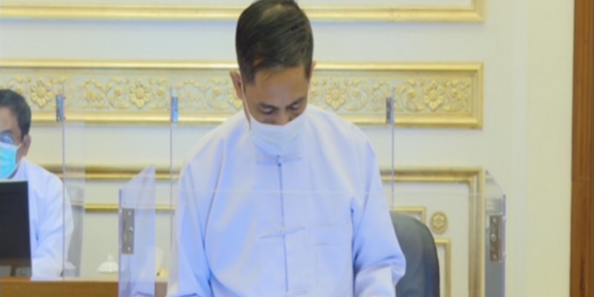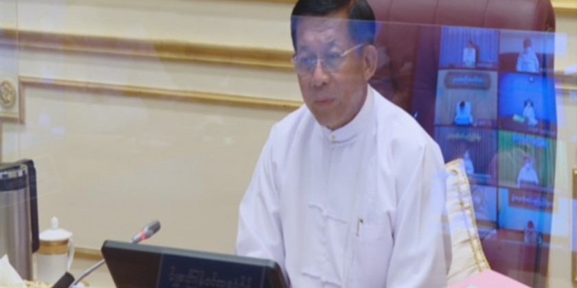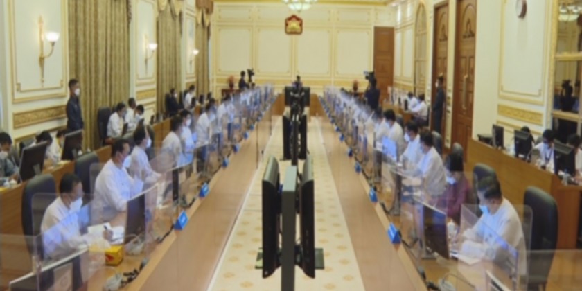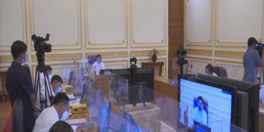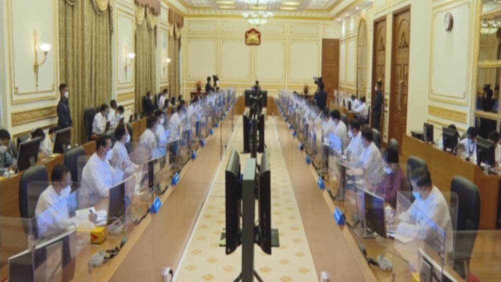 The Chairman of the State Administration Council Prime Minister Senior General Min Aung Hlaing addresses the meeting 2/2021 of the Union Government of the Republic of the Union of Myanmar at the office of State Administration Council Chairman in Nay Pyi Taw on 25 October 2021.