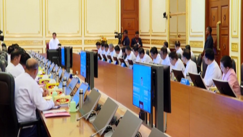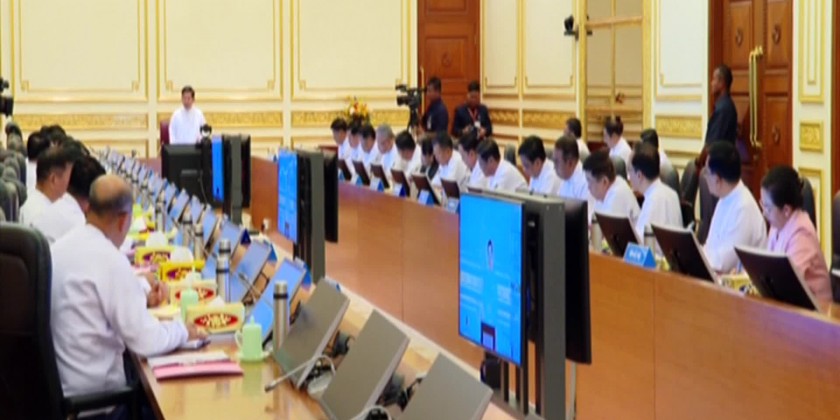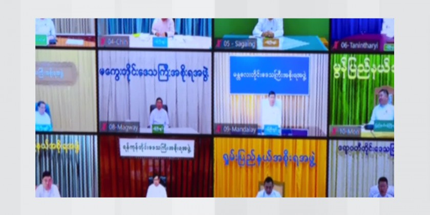 The meeting was attended by the Vice Chairman of State Administration Council Deputy Prime Minister Vice Senior General Soe Win, Union Ministers and officials in person and the Chairman of Nay Pyi Taw Council, Regions and States Chief Ministers through Video Conferencing System.