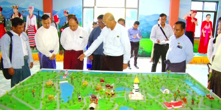 During the visit, officials provided updates on the construction progress, and the Union Minister gave necessary instructions. Then, they toured the traditional houses representing various ethnic groups, including Kachin, Kayah, Kayin, Chin, Bamar, Mon, Rakhine, and Shan, as well as the Palace Tower.