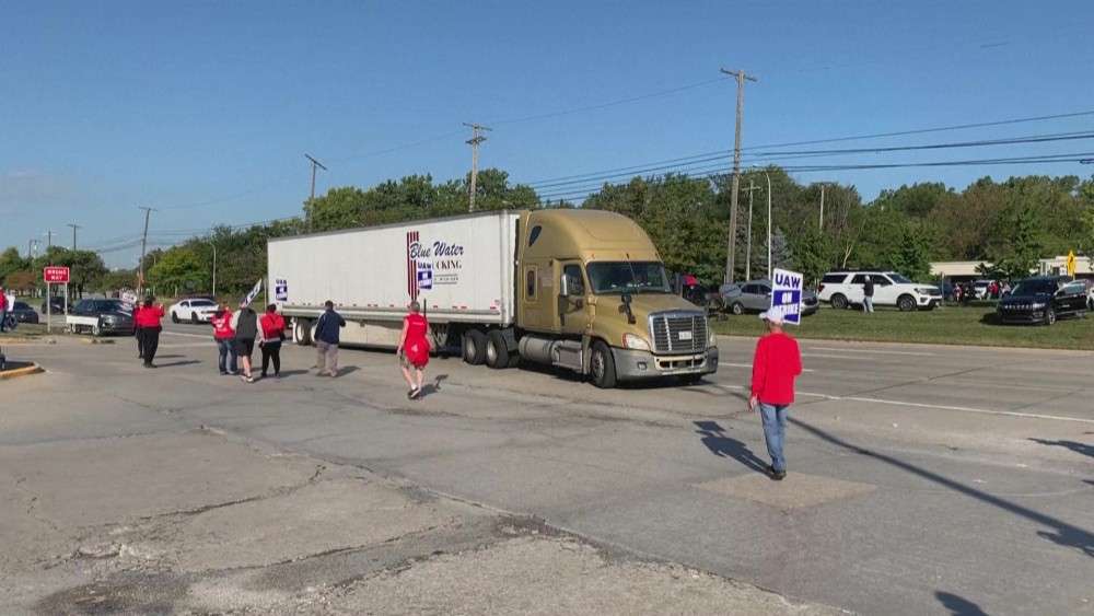 Workers at the "Big Three" US auto manufacturers went on strike Friday in a first-ever coordinated action to demand pay raises, winning strong support from President Joe Biden whose pro-union stand is crucial to his 2024 re-election hopes.
