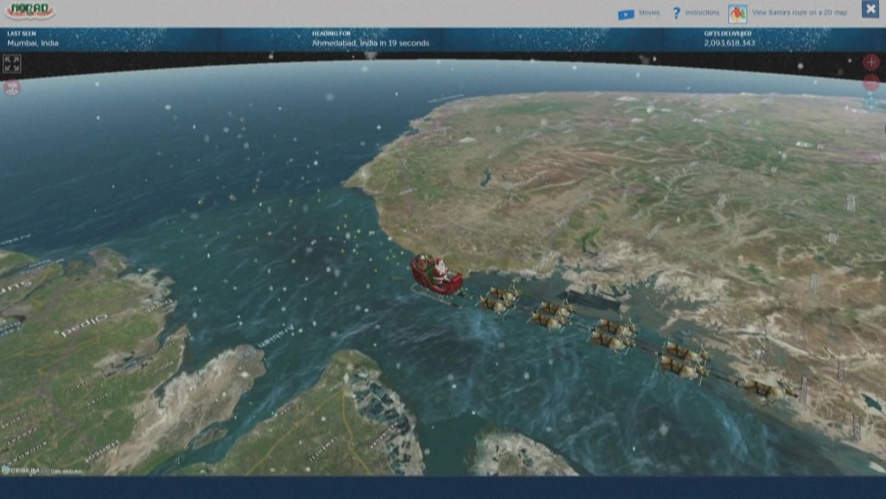 The joint US-Canadian military monitoring agency continued its decade-long tradition of tracking Santa's whereabouts, helping children around the globe find out when his reindeer-powered, present-filled sleigh is coming to town.