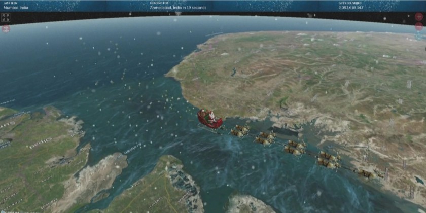 A 3-D, interactive website showed Santa and his reindeer on their imagined worldwide delivery route, allowing users to click and learn more about various cities along the way. The Santa tracker on Sunday went down for a short while, leaving children in the Pacific region in the dark about his exact position.
