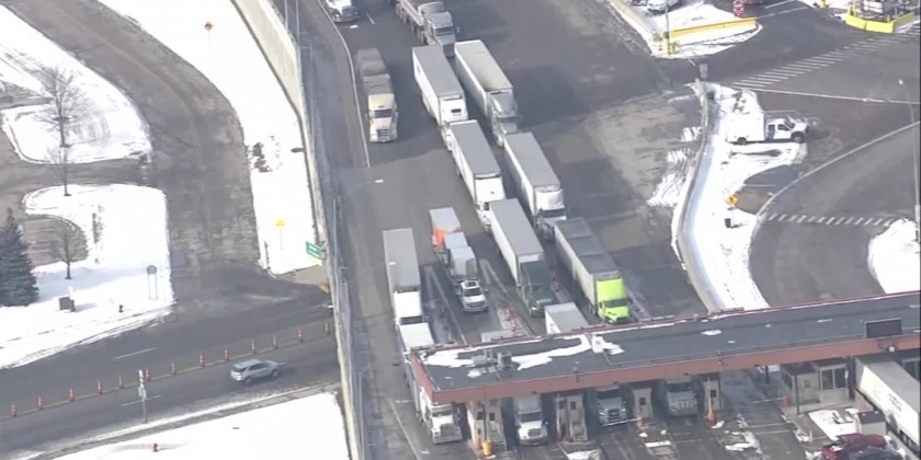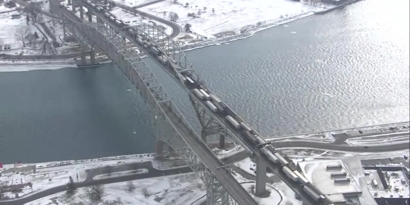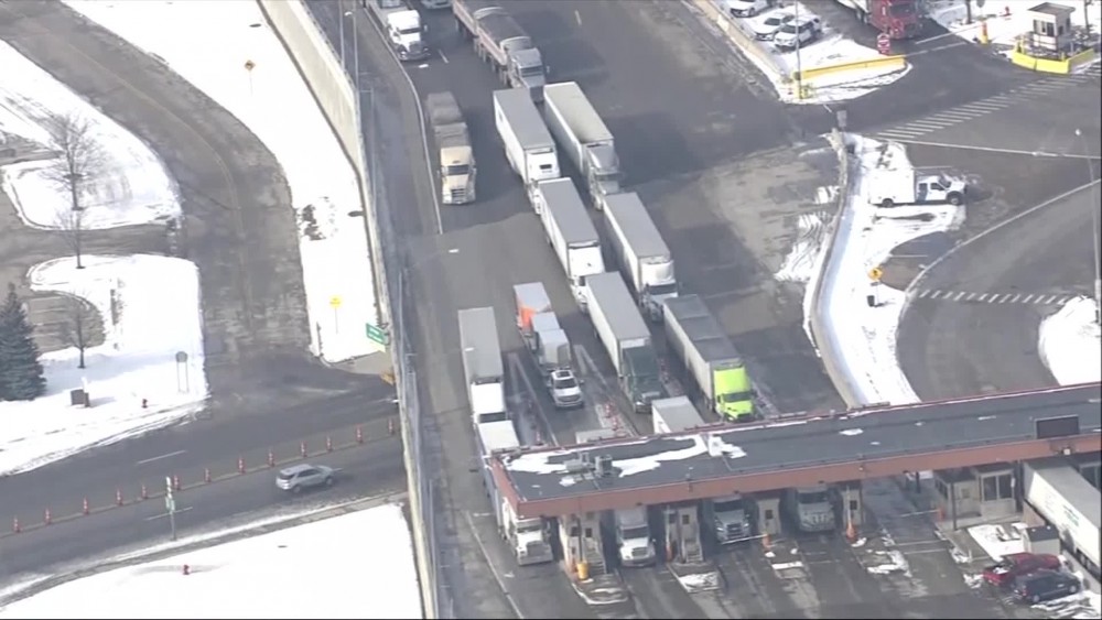 Truckers trying to avoid the blockade of a bridge between the U.S. city of Detroit and Windsor, Ontario, Canada are facing long delays as they head for a separate bridge to the north. To avoid the blockade and get into Canada, truckers in the Detroit area had to drive 70 miles north to Port Huron, Michigan, and cross the Blue Water Bridge, where there was a 4½-hour delay leaving the U.S. The protesters are demanding an end to Canada’s COVID-19 restrictions. Traffic was prevented from entering Canada, while U.S.-bound traffic was still moving. The bridge carries 25% of all trade between the two countries, and Canadian authorities expressed increasing worry about the economic effects.