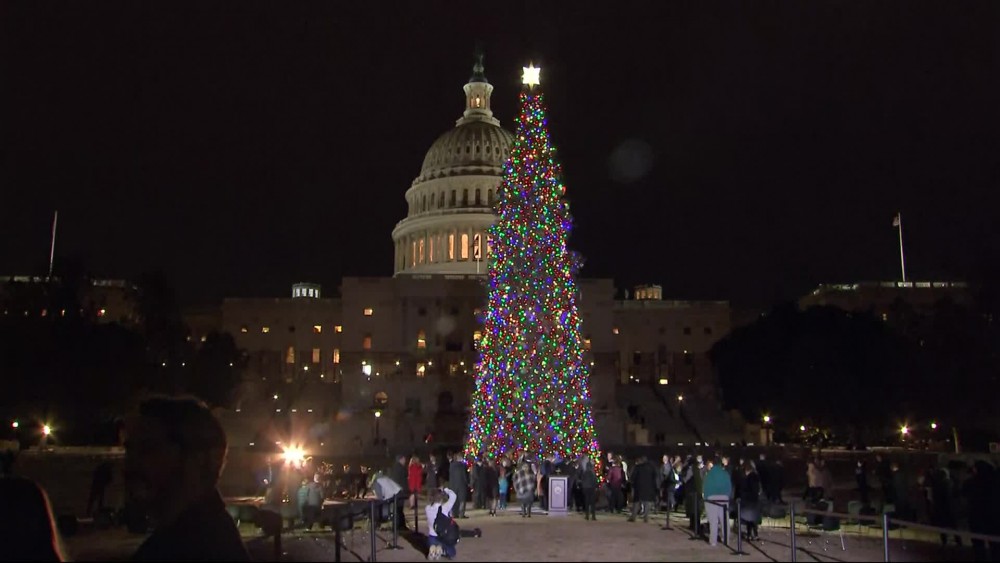 US Capitol Christmas tree lights up for the season
