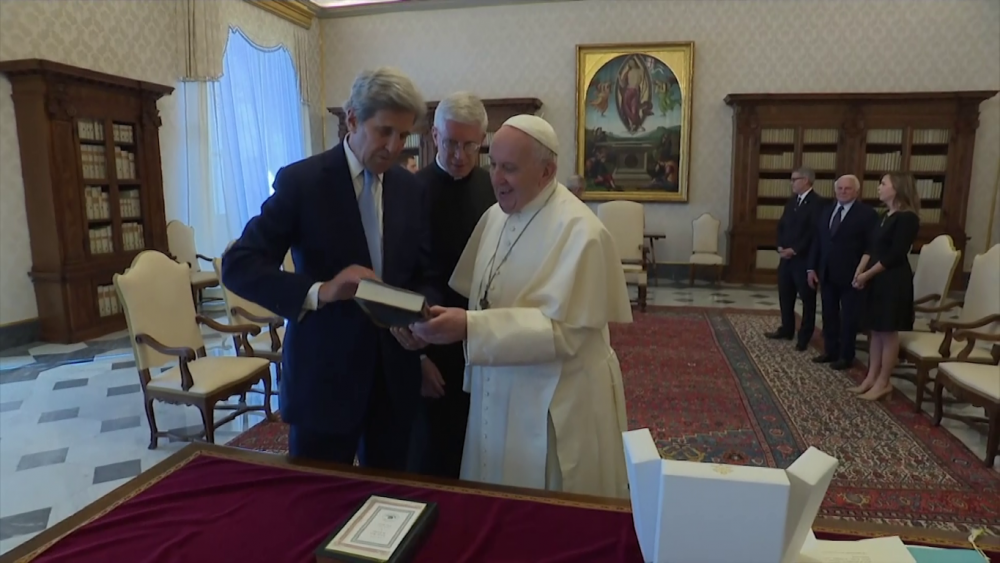 The pope and Kerry exchanged gifts, with Kerry giving the pope the books "The Overstory" by Richard Powers and "Everyday is extra" by Kerry himself, while the Pontiff gave the US envoy a miniature sculpture and some of his books, with "Laudato Sii" among them.