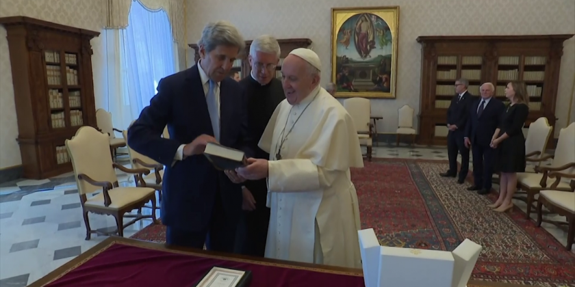John Kerry, one of the leading architects of the Paris climate agreement and current U.S. climate envoy for national security was received by Pope Francis at the Vatican on Saturday.