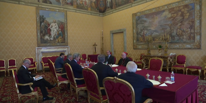 After the meeting, the pope, Kerry and his delegation met the Vatican delegation for climate talks.