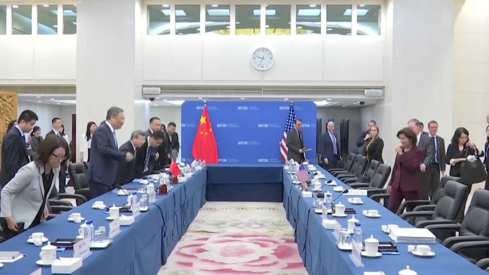 US Commerce Secretary Gina Raimondo met with her Chinese counterpart Wang Wentao in Beijing during four-day visit on Monday.