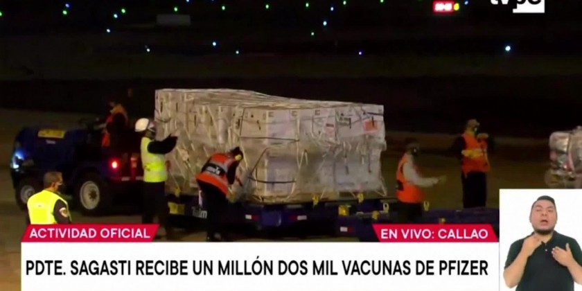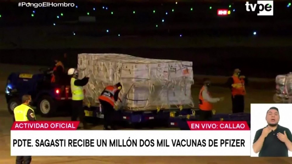 Coronavirus vaccines donated by the United States began arriving in Peru on Tuesday evening. Peru's President Francisco Sagasti was at the airport to welcome the consignment, alongside the American ambassador to Lima.