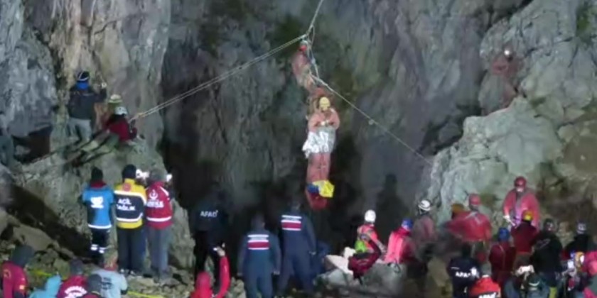 On September 9, the speleologist was brought to the camp established at a depth of 400 meters as part of the evacuation efforts. Necessary medical interventions were made by doctors. The process was completed on the 9th day and the cave scientist was rescued from where he was trapped. Dickey was taken to Mersin City Hospital by military helicopter.