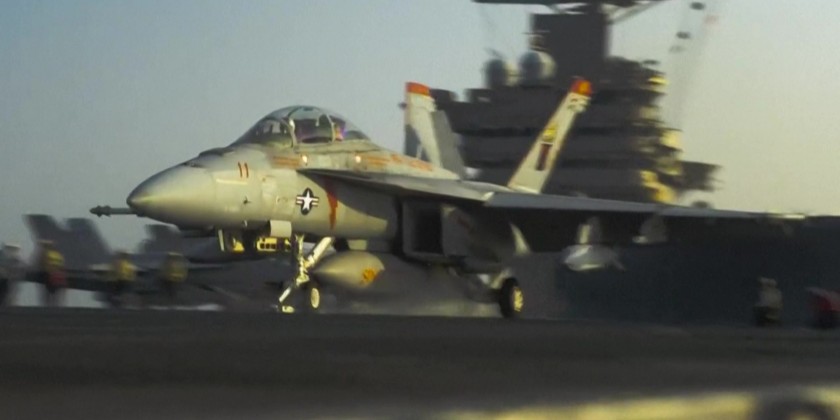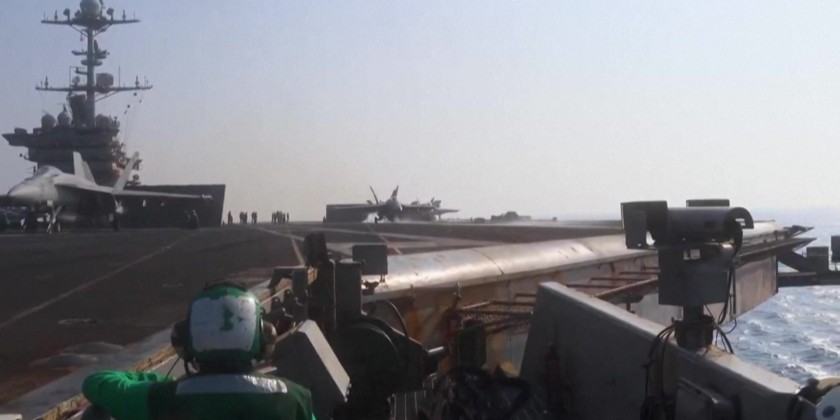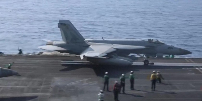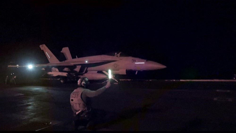 US Central Command released the images, showing US F/A-18 Super Hornet attack fighter jets, taking off to strike Huthi positions and a Huthi drone being taken down with the AGR-20 FALCO Advanced Precision Kill Weapon System.