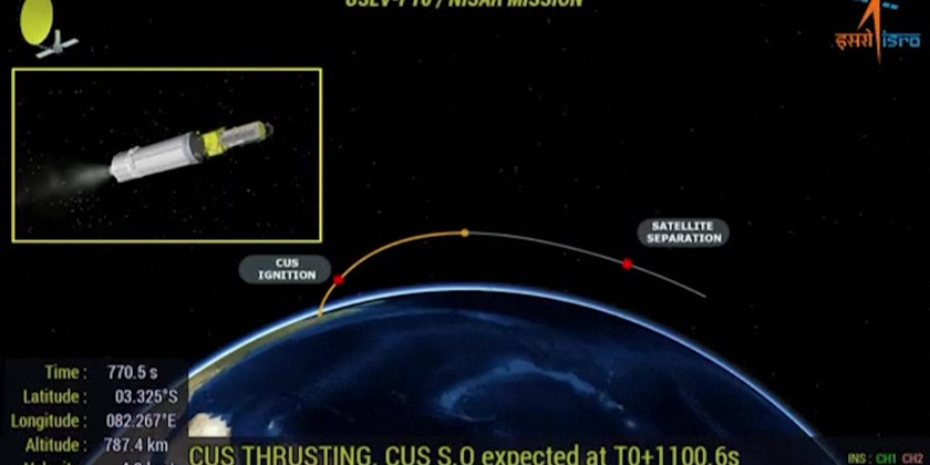 Dubbed NISAR (NASA-ISRO Synthetic Aperture Radar), the pickup truck-sized spacecraft blasted off from the Satish Dhawan Space Centre on India's southeastern coast, riding an Indian Space Research Organisation (ISRO) Geosynchronous Satellite Launch Vehicle (GSLV) rocket.