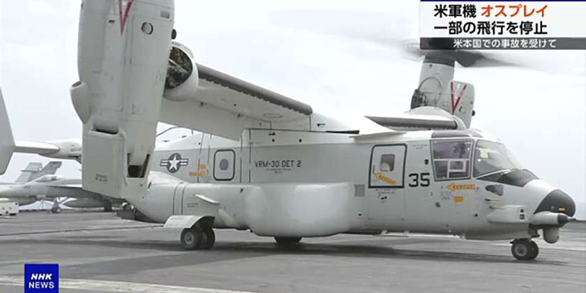 The military decided to implement the operational pause for its Ospreys after a weakened metal part inside one of the aircraft broke apart during a flight on November 20.