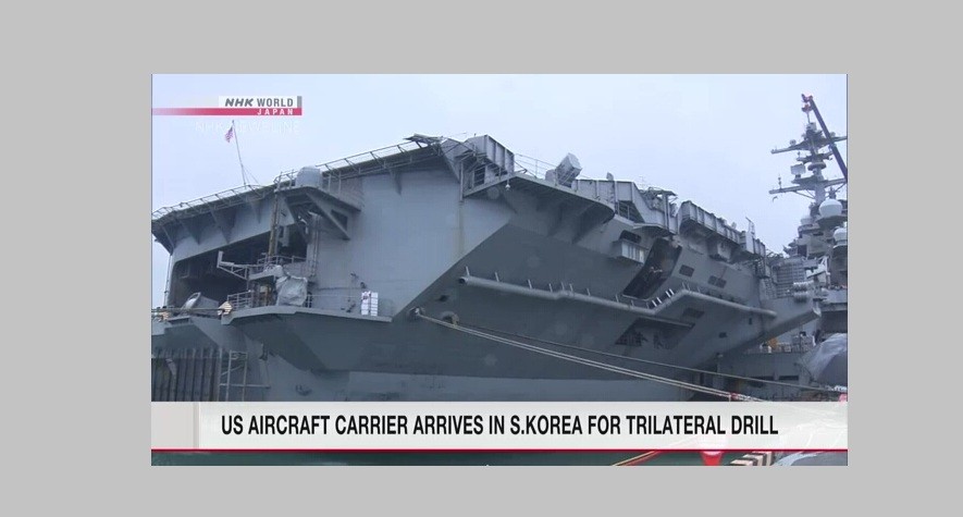 A US nuclear-powered aircraft carrier arrived in Busan, South Korean on Saturday. The vessel is scheduled to participate in a trilateral exercise with South Korea's military and Japan's Self-Defense Forces.