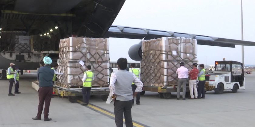 Another U.S. Air Force plane carrying essential aid to help India battle an explosion of COVID-19 infections arrived in New Delhi on Wednesday. The plane brought an oxygen generator donated by the State of California, more than 280,000 rapid diagnostic tests, and more than 1.3 million N95 masks. This was the sixth aid plane to arrive from the U.S. since late April.