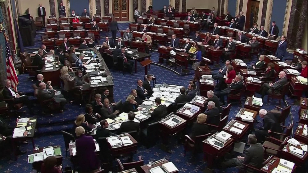 U.S. Senate republicans blocked democrats' move to subpoena Defense Department documents for the impeachment trial of president Donald Trump on Tuesday. Senators voted along party lines, 53-47, to block four separate motions from Democratic leader Chuck Schumer to subpoena records and documents from the White House, the State Department, the Defense Department, and the Office of Management and Budget related to Trump's dealings with Ukraine.