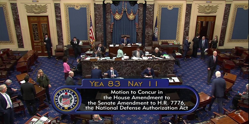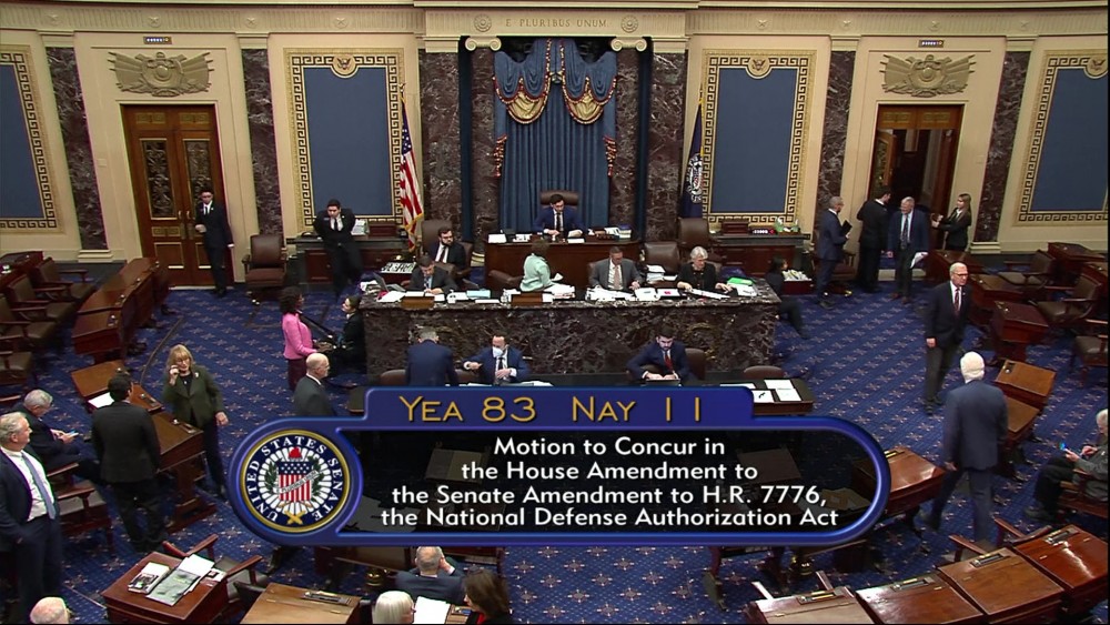 It includes a 4.6% pay raise for service members and the Defense Department's civilian workforce. The Senate passed the defense policy bill by a vote of 83-11. The measure also received broad bipartisan support in the House last week.