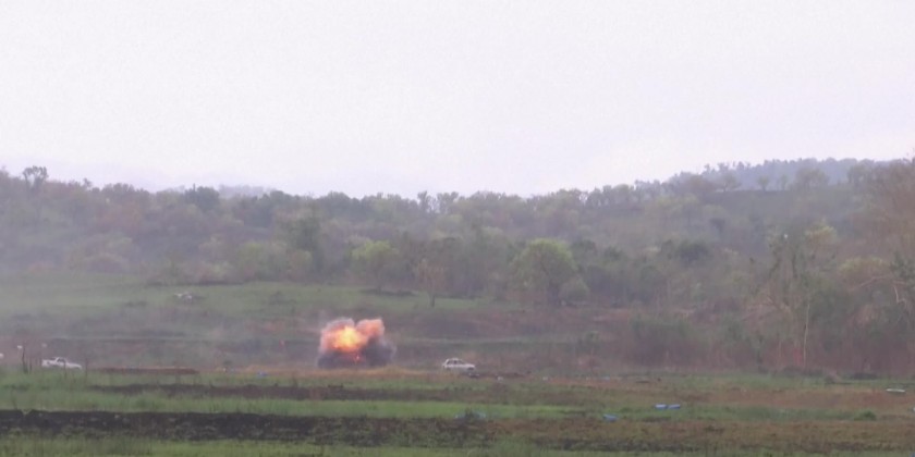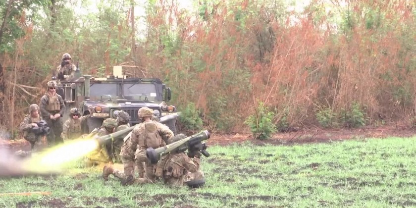 In a gunnery range at Fort Magsaysay, a northern Philippine training camp for local special forces, American and Filipino troops successively fired Javelin guided missiles toward three target cars beside flames to simulate a battle zone at the bottom of a hill.