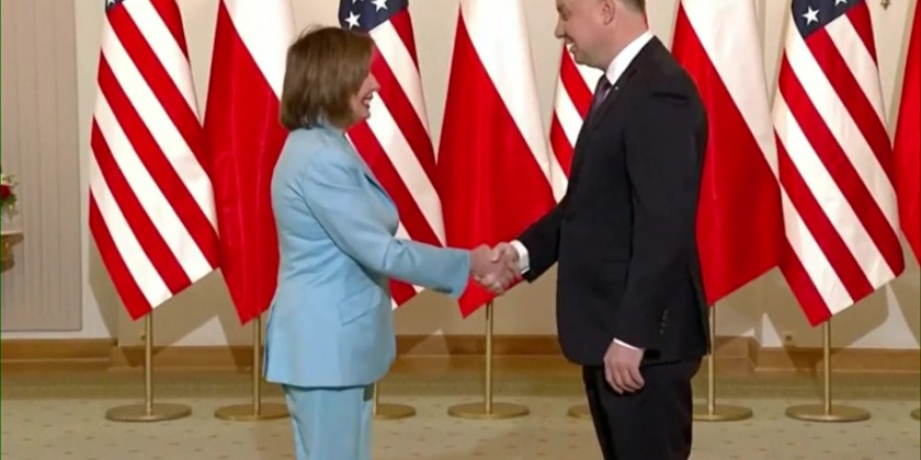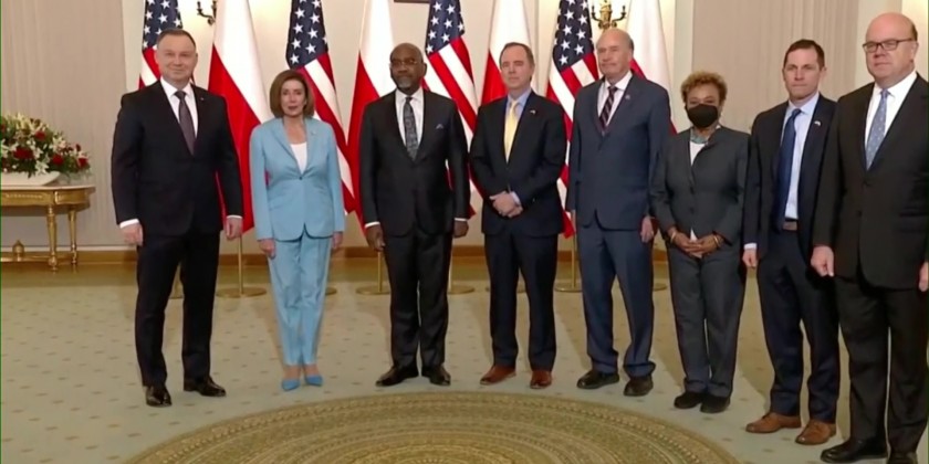U.S. Speaker of the House Nancy Pelosi and a delegation of a half dozen U.S. Representatives met on Monday with Polish President Andrzej Duda in Poland.