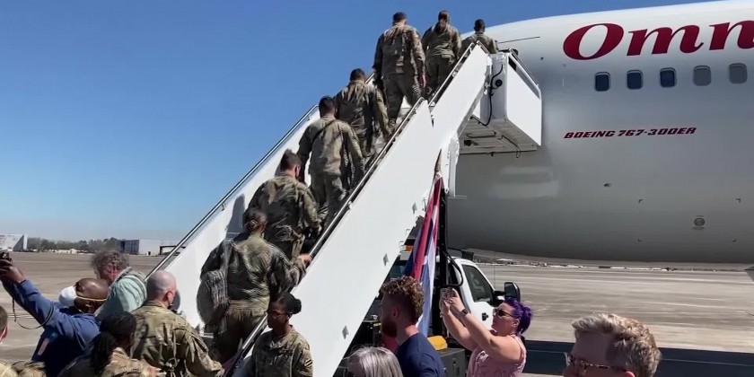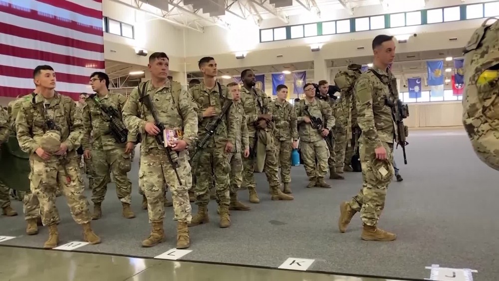 Soldiers from the U.S. Army's 3rd Infantry Division based at Fort Stewart, Georgia, are deploying to Germany to train with NATO allies. About 3,800 Fort Stewart soldiers were ordered to deploy. Those leaving Wednesday from Hunter Army Airfield in Savannah had a week to prepare.