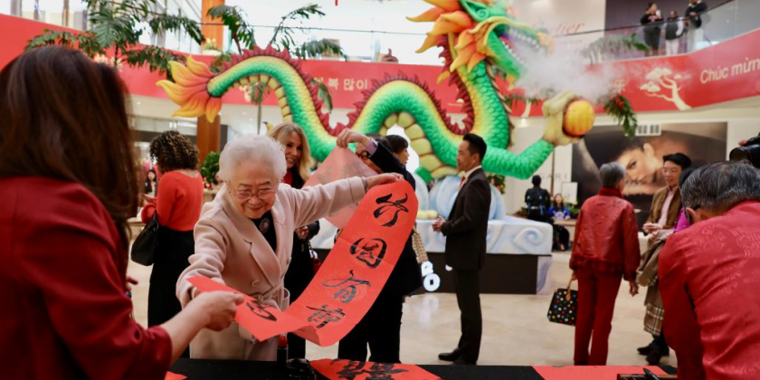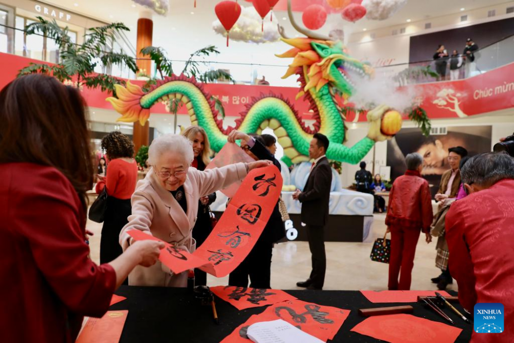 The largest shopping center, South Coast Plaza on the West Coast of the United States kicked off its 12th Chinese Lunar New Year celebration with a spectacular Year of the Dragon display on Thursday. A photography exhibition was presented by the Consulate General of China in Los Angeles and the China National Tourist Office in Los Angeles, titled "Happy Chinese New Year".