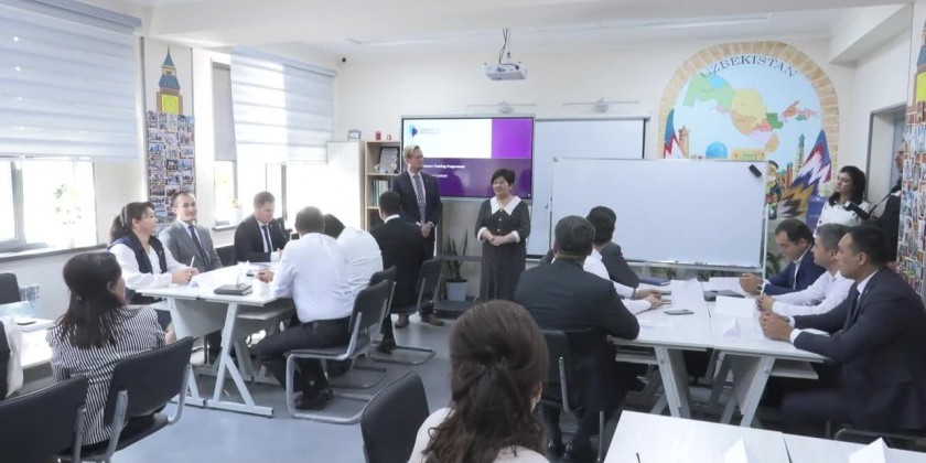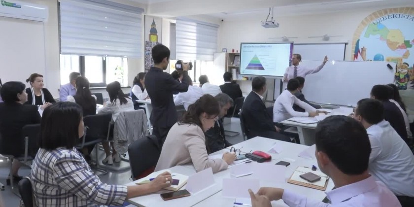 A seminar training was organized for the winners of the competition in Tashkent. The seminar training was held at the 5th general education school in the Yunusabad district of Tashkent. The professor, the head of the Department of Education, Languages, and Linguistics, from Great Britain conducted the training organized for the management personnel of public education institutions.