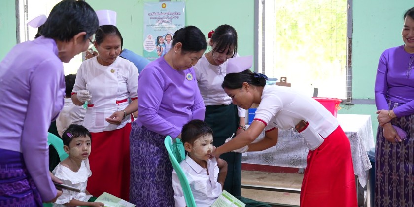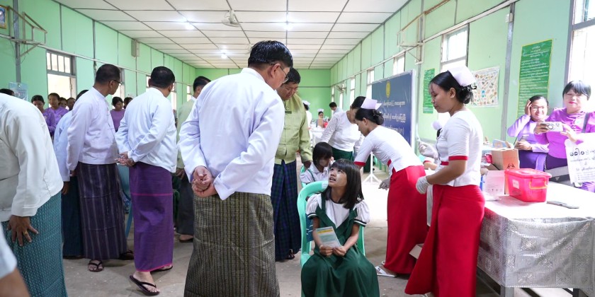 Vaccination campaign of DT (diphtheria, tetanus) to children with the aged between 5 to 7 year-old and  HPV vaccine to children between 9 to 10 year-old is taking place at the basic education schools in Magway Region.