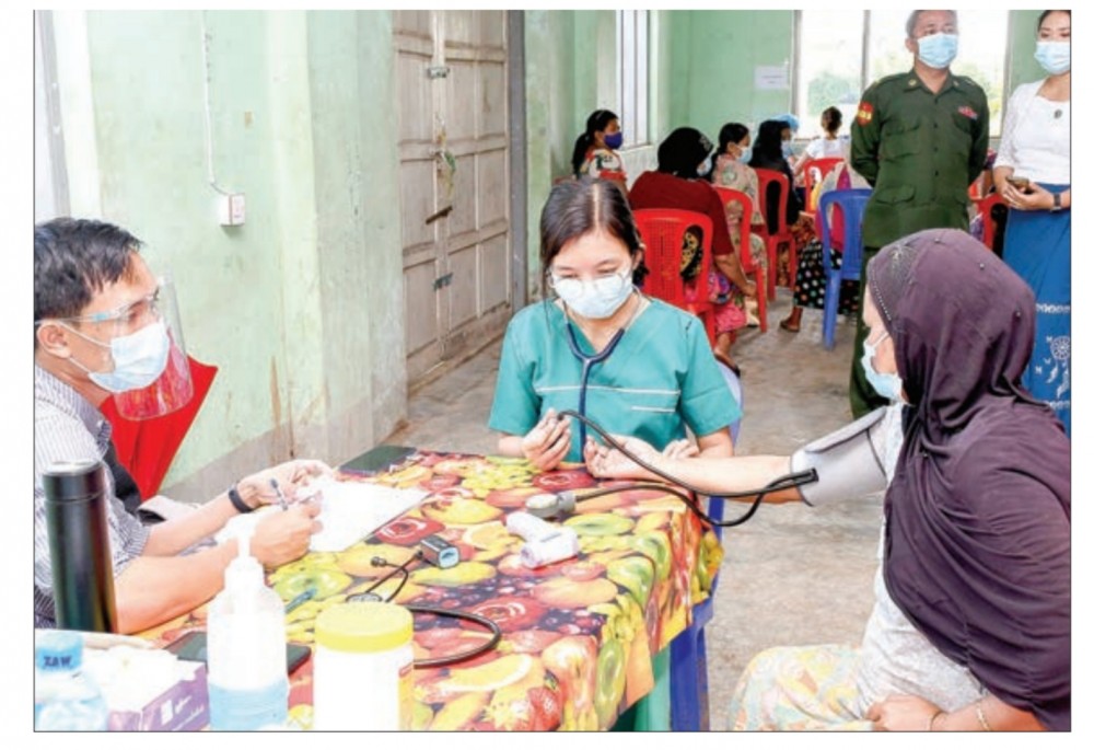 Before the vaccination, health workers and medical personnel from the Sittway station ensured personal health conditions are normal.