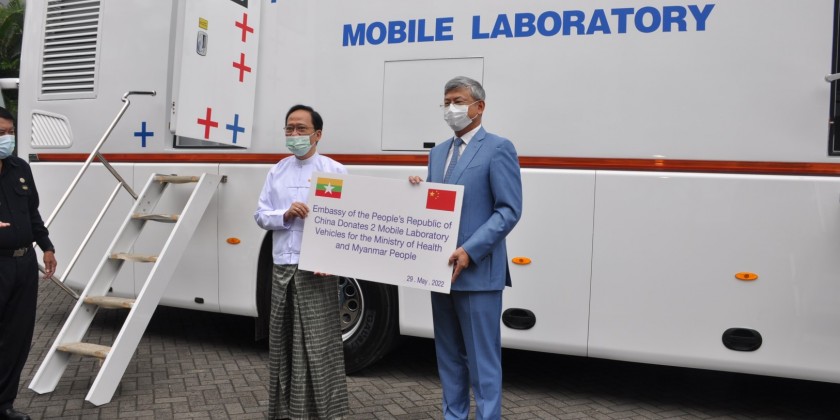 Moreover, two mobile laboratory vehicles donated by the Chinese Embassy, arrived Yangon via Muse border gate.