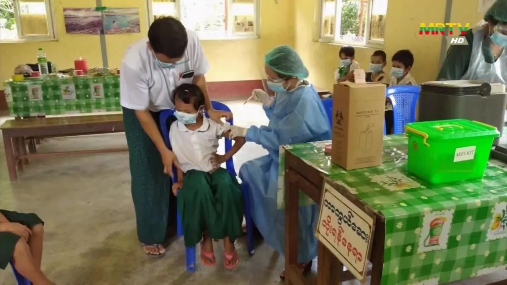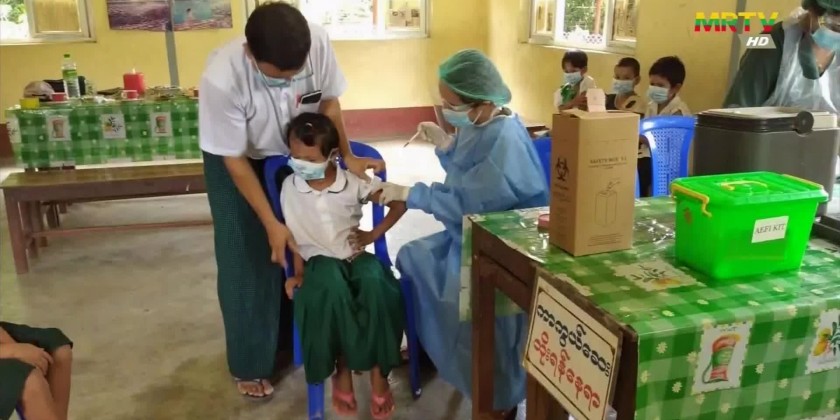 Similarly on that day, healthcare officials gave the vaccines to the students from twenty-six townships in Ayeyawady Region, five townships in Rakhine State and seven districts in Mandalay Region.