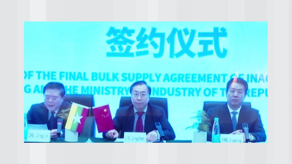 Chairman Mr Jingzhen Liu of Sinopharm Group said Sinopharm CNBG is a leading manufacturer and exporter of pharmaceuticals in China. It is engaged in medical treatment and industry and is the second-largest pharmaceutical manufacturer in Asia. The World Health Organization (WHO) has approved the emergency use of Sinopharm COVID-19 vaccines produced by the company. He also said that he will continue to cooperate in the prevention and control of the pandemic in Myanmar through the virtual system. Next, an agreement to purchase 10 million RTF Bulk Doses of Sinopharm COVID-19 vaccine was signed by Managing Director of Myanmar Pharmaceutical Enterprise U Myo Zar Ni Win and Mr Yang on behalf of Sinopharm China National Biotech Group.
