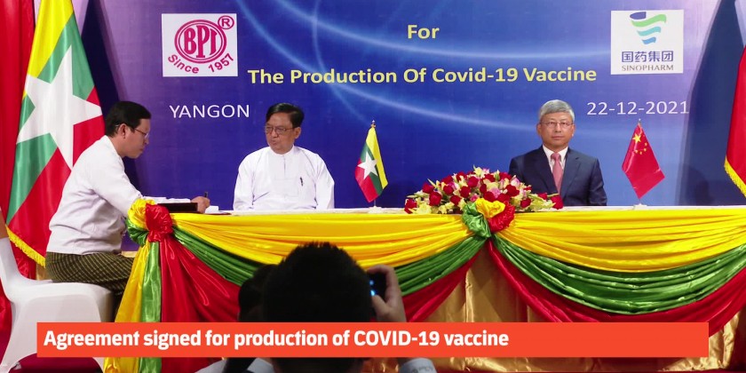 Myanmar scheduled to produce COVID-19 vaccine at the end of January by purchasing of Ready to fill Bulk from China. Myanmar and China signed RTF Bulk Purchase Agreement for production of COVID-19 vaccine on Wednesday.