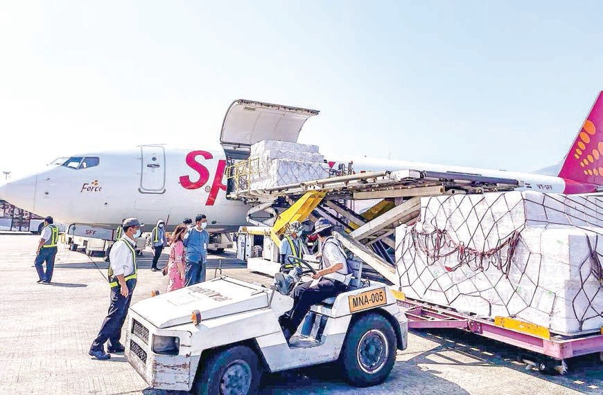 Out of the 13.4 million doses of Covishield vaccine purchased from India, 6.7 million doses arrived at Yangon International Airport on Monday and were received by a team led by Head of the Yangon Region Department of Medical Services and Public Health.