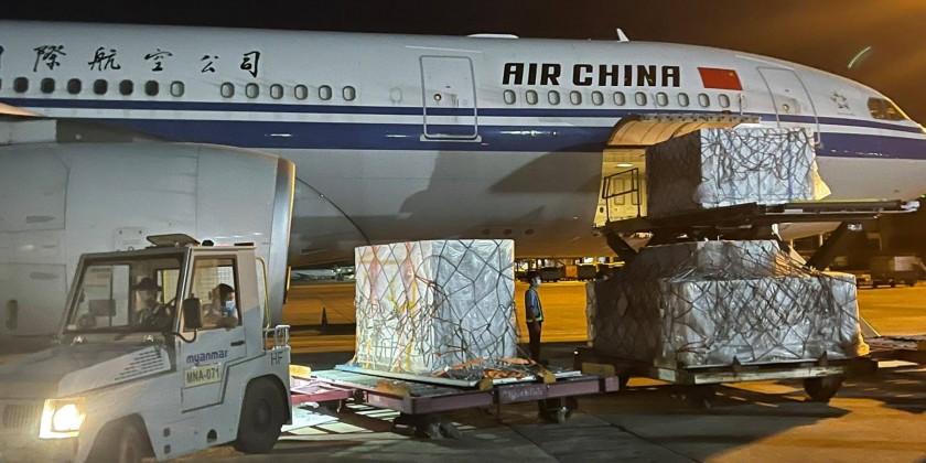 A total of one million doses of Sinovac COVID-19 vaccines and 1,001,600 hypodermic needles donated by the People’s Republic of China arrived at Yangon International Airport at 6 p.m. on the 3rd October by Air China as a first batch and were received by the head of Yangon Region Medical Services/ Public Health Departments and officials.