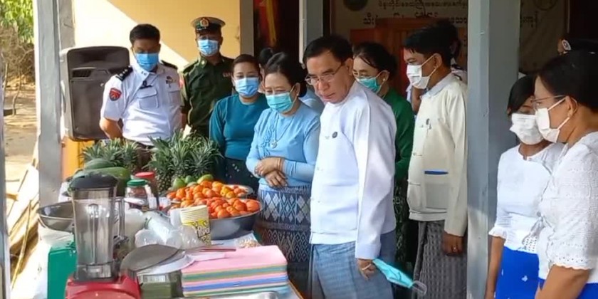 After the ceremony, Bago Region Chief Minister U Myo Swe Win and party viewed around the training equipment. The Value-added Product Training Course is being opened starting from 5th to 14th May with 40 trainees.