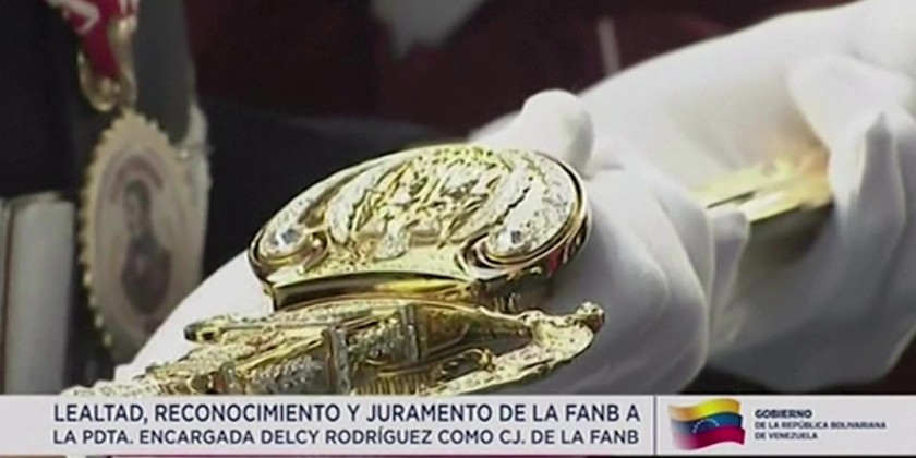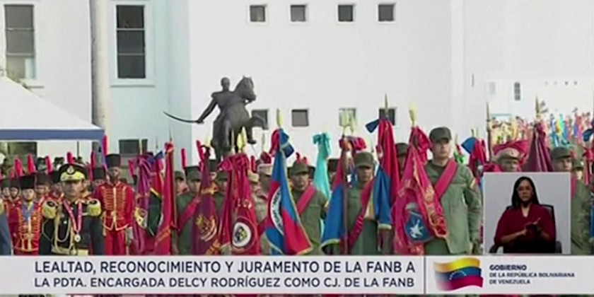 "They swear absolute loyalty and subordination," said Defense Minister Vladimir Padrino. Venezuela's powerful Interior Minister, Diosdado Cabello, pledged loyalty on behalf of police forces. The pledge came as more than 3,000 troops and police in uniform filed past Venezuela's first female leader and commander in chief.