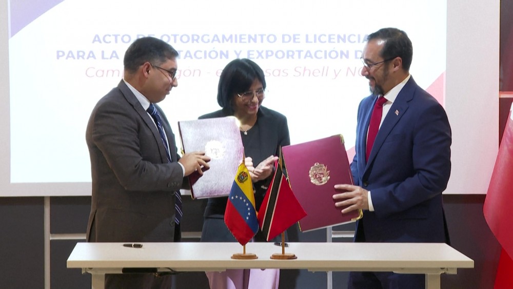 The agreement, which involves state-owned Petroleos de Venezuela and the National Gas Company of Trinidad and Tobago, grants Shell a license and embodies a "great and historic moment", according to Trinidad and Tobago's energy minister Stuart Young.