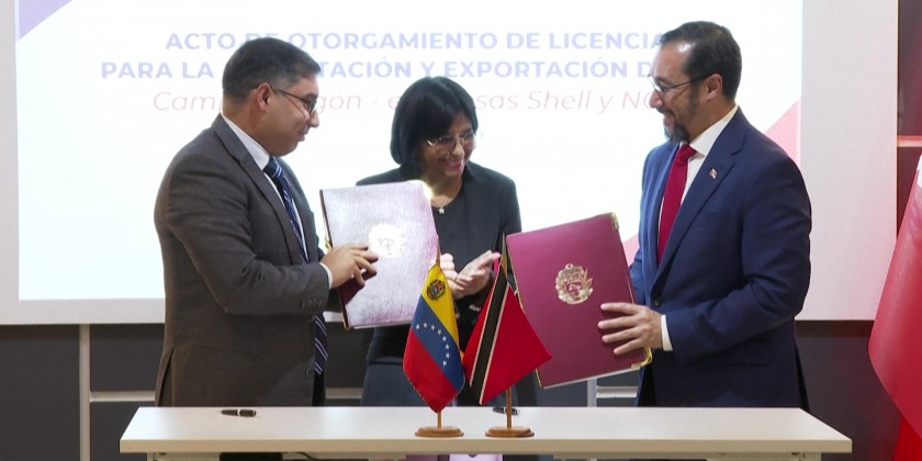 Venezuela and Trinidad and Tobago sign an agreement for the development of an offshore natural gas field and export of its production Thursday in Caracas.