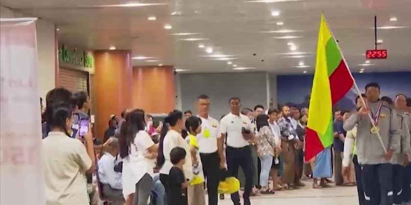 The Myanmar rowing team, which competed in the 2025 Singapore Sprint Cup Canoe/Kayak competition, held in Singapore from July 12th to July 13th, returned to Yangon International Airport in the evening on July 15.