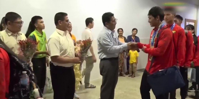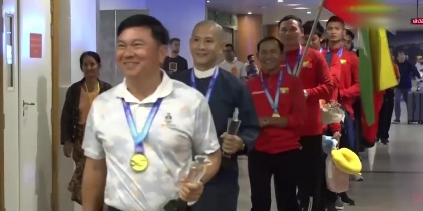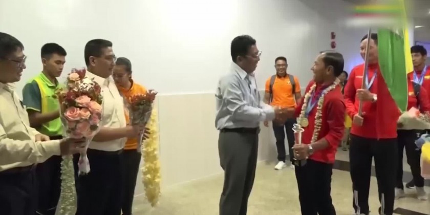 Victorious Team: Myanmar Rowing Team arrives back in Yangon