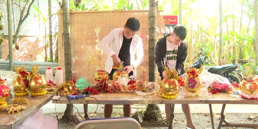 The Workshop owner said that with the 13 USD version, he apply gold leaf and add a decorative flower and a calligraphy couple to help to reduce costs for customers. Even with tighter budgets, many consumers still consider Tet gifts and decorations an essential expense.