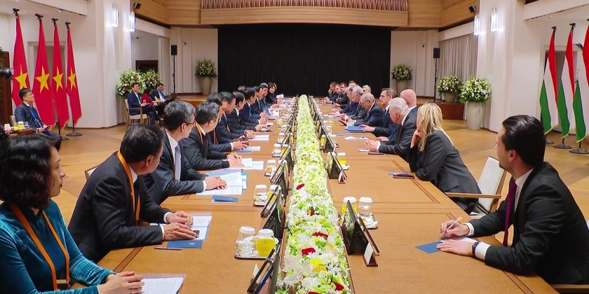 Hungarian Prime Minister Viktor Orban chaired a welcoming ceremony for Vietnamese Prime Minister Pham Minh Chinh and a high-ranking Vietnamese delegation during their official visit to Hungary on Thursday evening. The event took place at the Hungarian Parliament Square. Following the ceremony, the two Prime Ministers held talks to discuss various important issues.