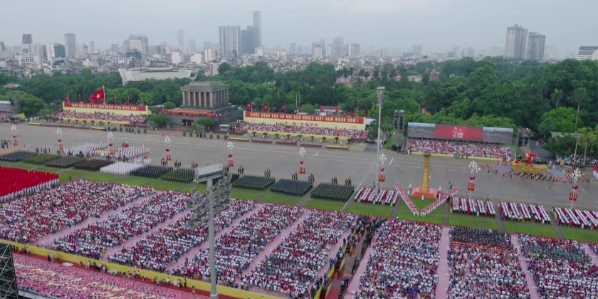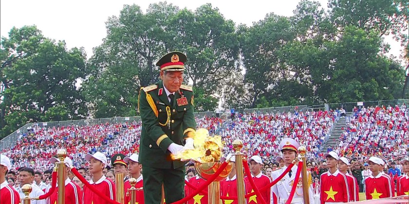 Viet Nam Prime Minister Phạm Minh Chính and many Party and State leaders attended the event. The rehearsal began with the torch relay and ceremonial flame lighting. Symbolising the aspirations of the Vietnamese people.