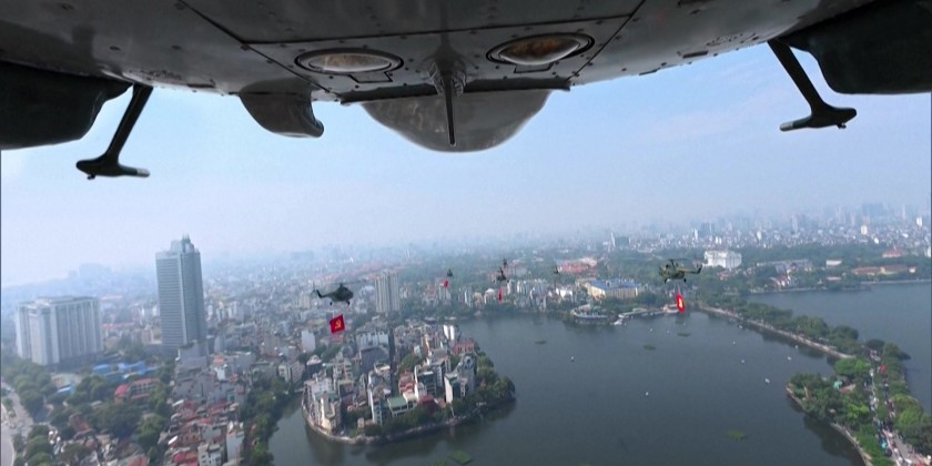 Tens of thousands of people gathered at Ba Dinh Square in Hanoi on Tuesday to participate in the official celebrations. The event featured a parade with a wide range of military equipment, including helicopters, fighter jets, and naval vessels.