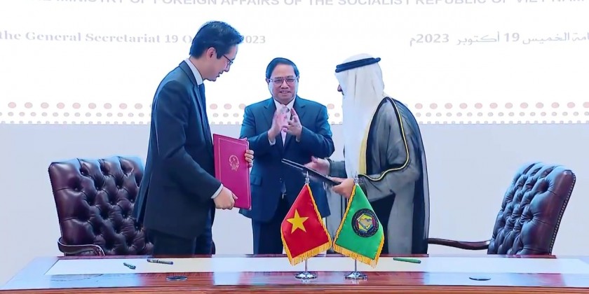 Vietnamese Prime Minister Pham Minh Chinh visited the Gulf Cooperation Council (GCC) Headquarters and witnessed the signing ceremony of a Memorandum of Understanding (MoU) on cooperation between the Ministry of Foreign Affairs and the GCC Secretariat.