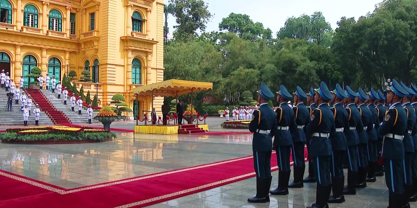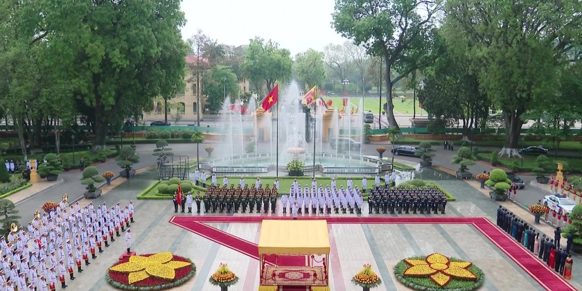 Vietnamese State President Luong Cuong hosted an official welcome ceremony for Sri Lankan President Anura Kumara Dissanayake on Monday, marking the start of a state visit from May 4 to 6.