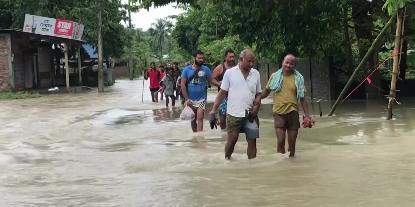The Brahmaputra, one of Asia's largest rivers, breached its mud embankments, inundating 3,000 villages and croplands in 28 of Assam's 33 districts across the border in India. Several train services were cancelled in India amid the incessant downpour over the past five days.