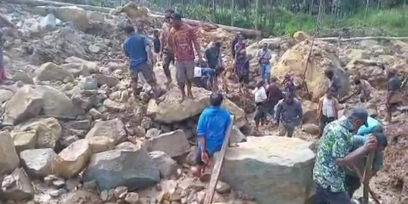 Villagers in bare feet search for their loved ones using shovels, axes and other makeshift tools, more than two days after a landslide devastated a village in Papua New Guinea.